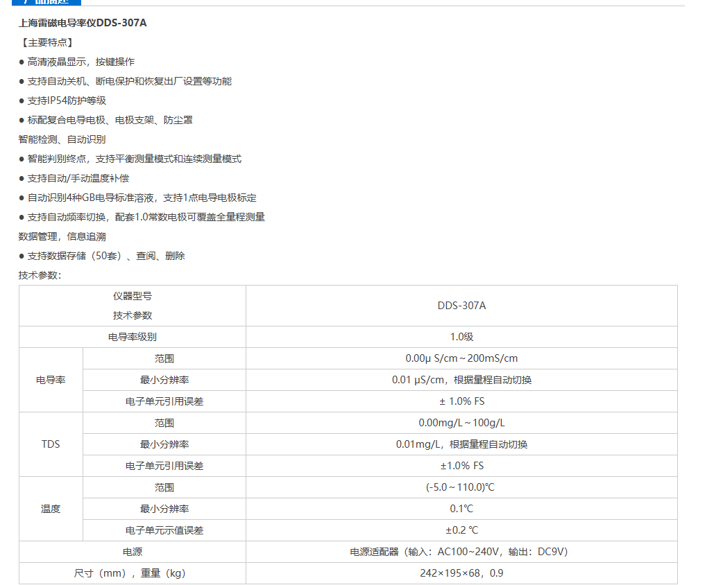 上海雷磁電導(dǎo)率儀DDS-307介紹